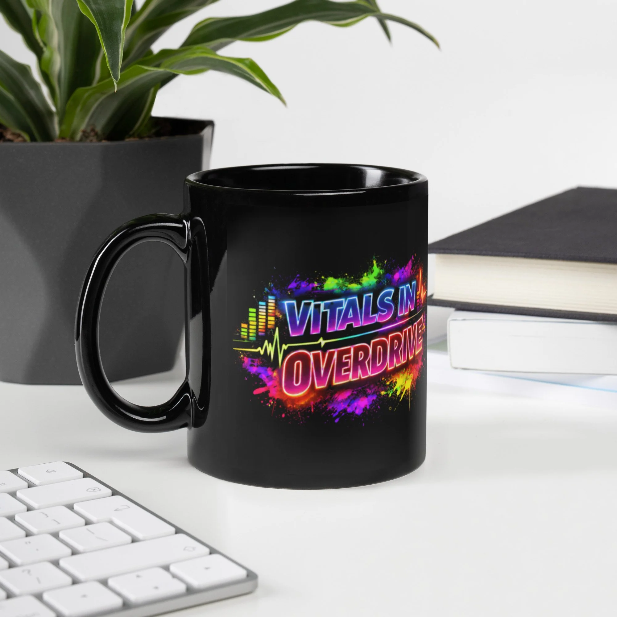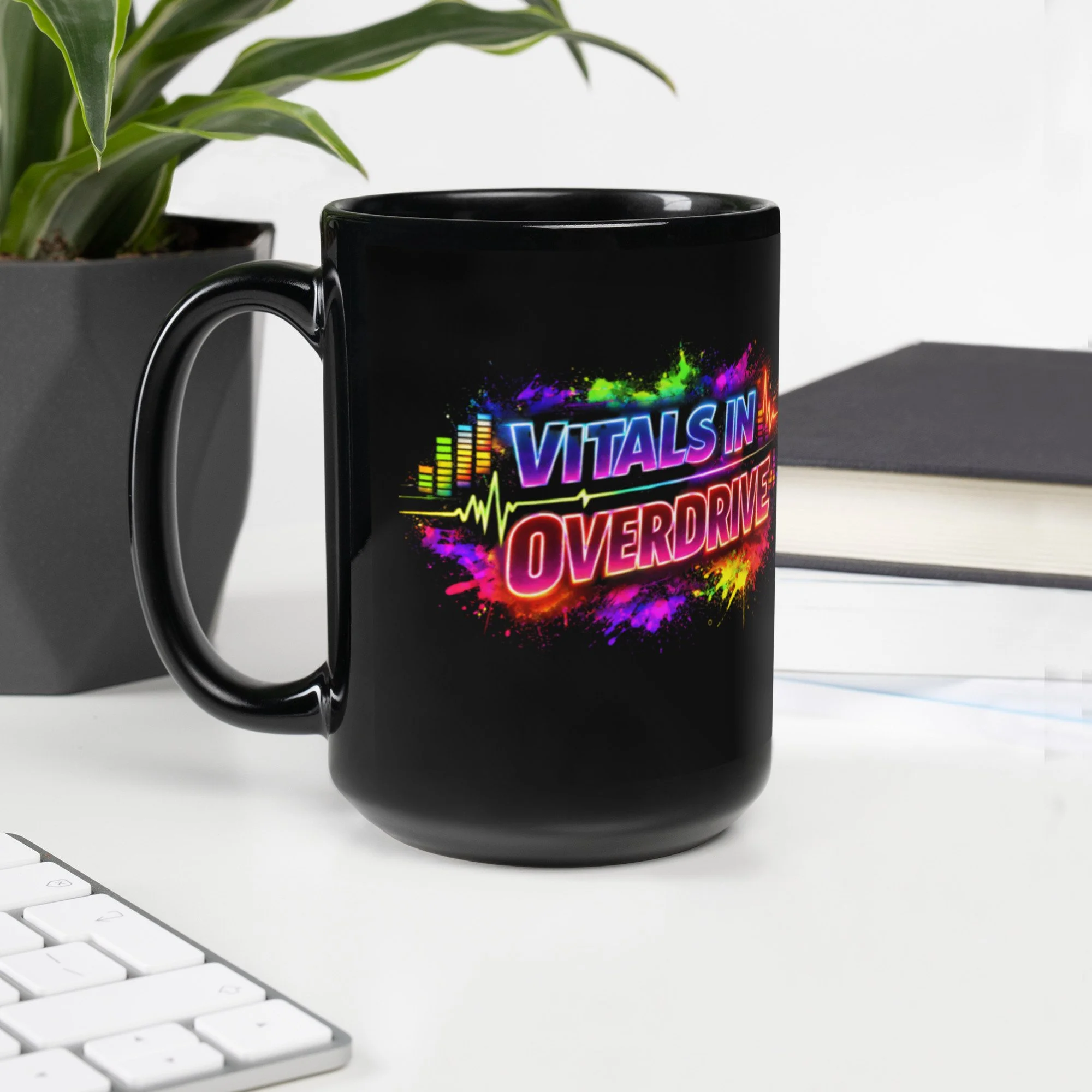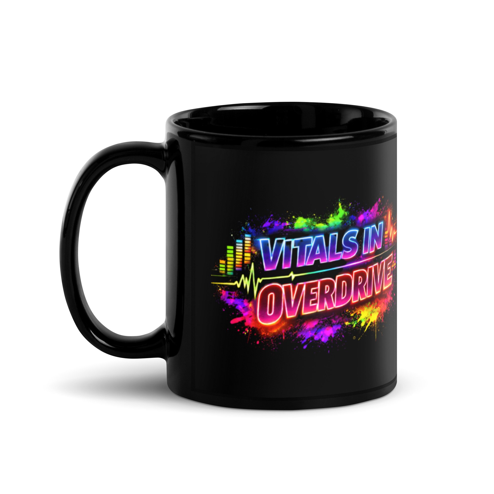 Shop › Vitals in Overdrive-Black Glossy Mug Image 1 of 8 Image 2 of 8 Image 3 of 8 Image 4 of 8 Image 5 of 8 Image 6 of 8 Image 7 of 8 Image 8 of 8 Vitals in Overdrive-Black Glossy Mug from $14.99 This cupboard essential is sturdy, sleek, and perfect for your morning java or afternoon tea. • Ceramic • 11 oz mug dimensions: height 3.85" (9.8 cm), diameter 3.35" (8.5 cm) • 15 oz mug dimensions: height 4.7" (12 cm), diameter 3.35" (8.5 cm) • Lead and BPA-free material • Glossy finish • Dishwasher and microwave safe Size: Select Size 11 oz 15 oz Add To Cart Added! This cupboard essential is sturdy, sleek, and perfect for your morning java or afternoon tea. • Ceramic • 11 oz mug dimensions: height 3.85" (9.8 cm), diameter 3.35" (8.5 cm) • 15 oz mug dimensions: height 4.7" (12 cm), diameter 3.35" (8.5 cm) • Lead and BPA-free material • Glossy finish • Dishwasher and microwave safe
